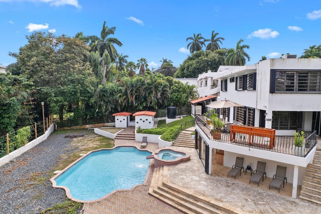 Priced to sell! The property is located in the desirable Santa Maria community, on a private cul-de-sac, offering both privacy and security. It features spacious living areas, a charming balcony overlooking the pool, a large patio, an outdoor kitchen, a full bathroom by the pool, and a driveway with ample space for several cars. There are two double-covered garages (one attached to the house). The master bedroom has a lovely view of the pool area. Additional features include a full-power generator, cistern, water softener system, and hurricane storm shutters. Santa Maria Urbanization offers 24/7 security with controlled access. The property is located just minutes from top private schools in San Juan.